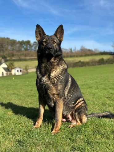 We found Freyja when looking for a softer girl to include in our program for more active pet roles, but her progeny seem equally as happy and willing to do working roles as well! Some are in IGP and others in Police roles so she's a wonderful producer!